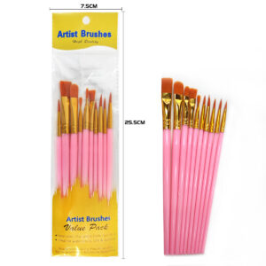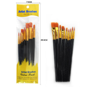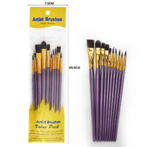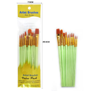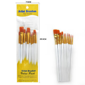 10-piece art brush set - Nylon bristle flat round tip double plastic pen holders suitable for watercolor/acrylic/oil painting creation, DIY line drawing, Christmas & New Year gift doodling brushes