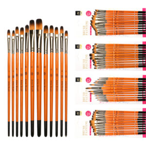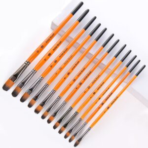 12 支装圆尖头画笔套装 — 美术专用画笔 适用于丙烯、水粉、油画创作 精细彩绘专用画笔 新手与专业人士通用美术用品