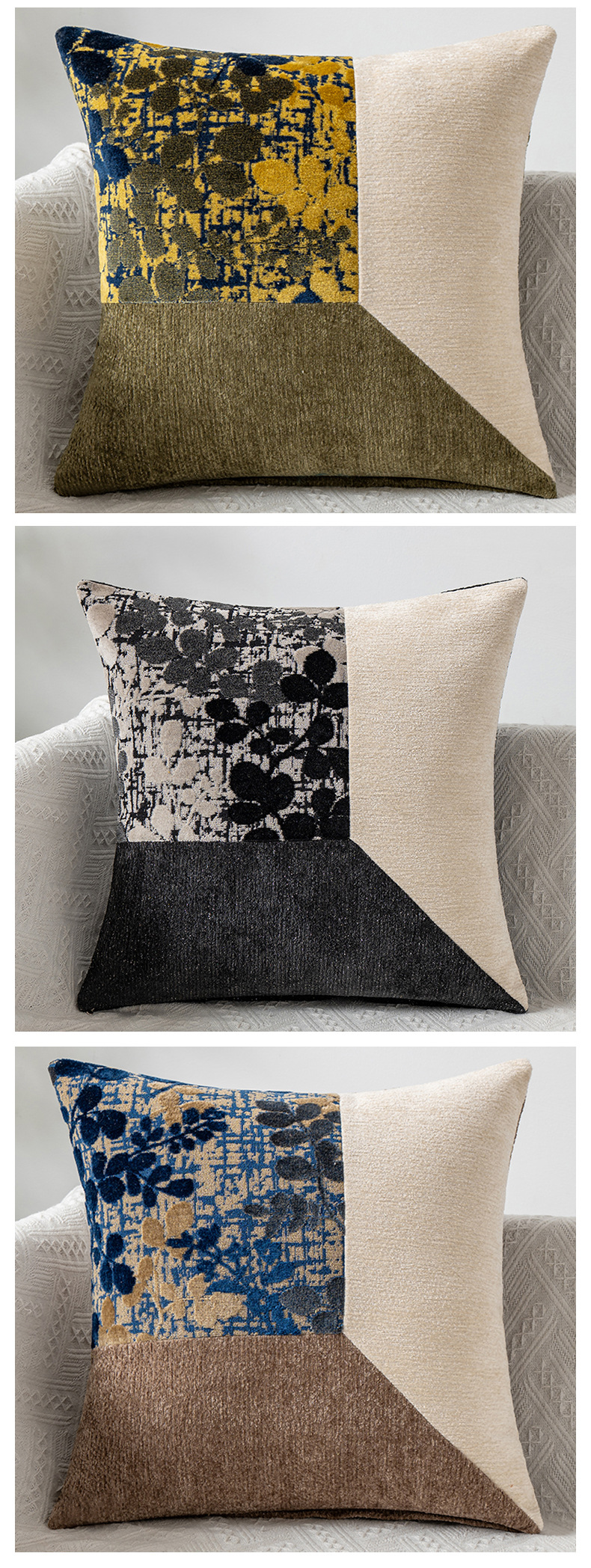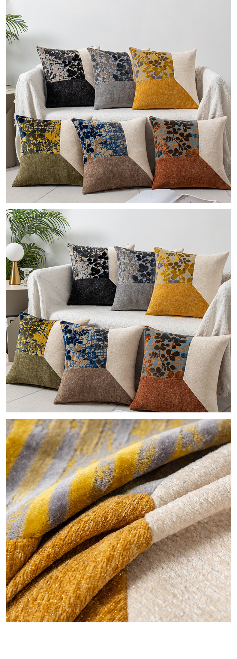 Chenille yarn patchwork pillowcase