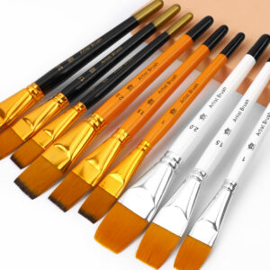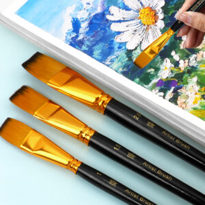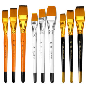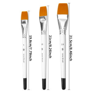 3-piece flat-head brush set - 3 sizes, nylon bristle material, black/white/orange available, suitable for acrylic, oil painting and watercolor creation
