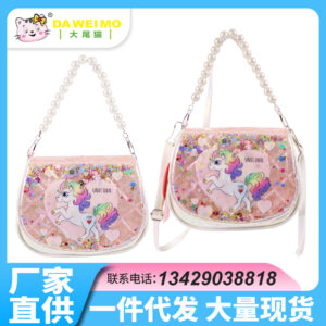 A cute, outdoor and fashionable mini Korean version crossbody bag for girls in the shape of a big-tailed cat cartoon unicorn