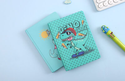 A5 hardcover student Notebook - Thick, rounded corner design with dinosaur patterns
