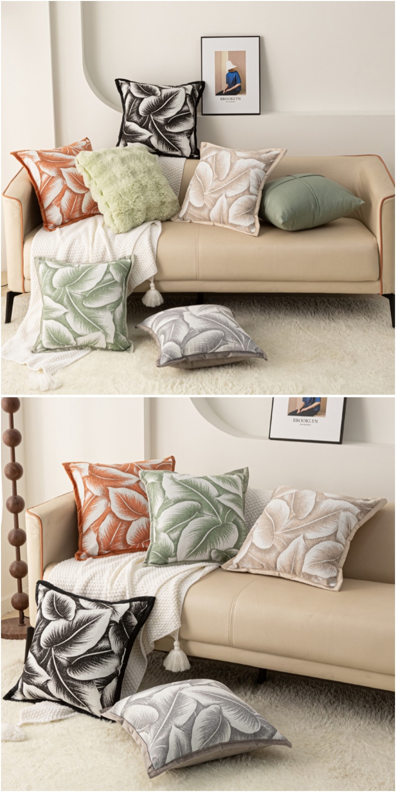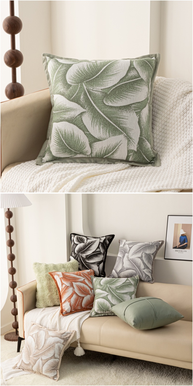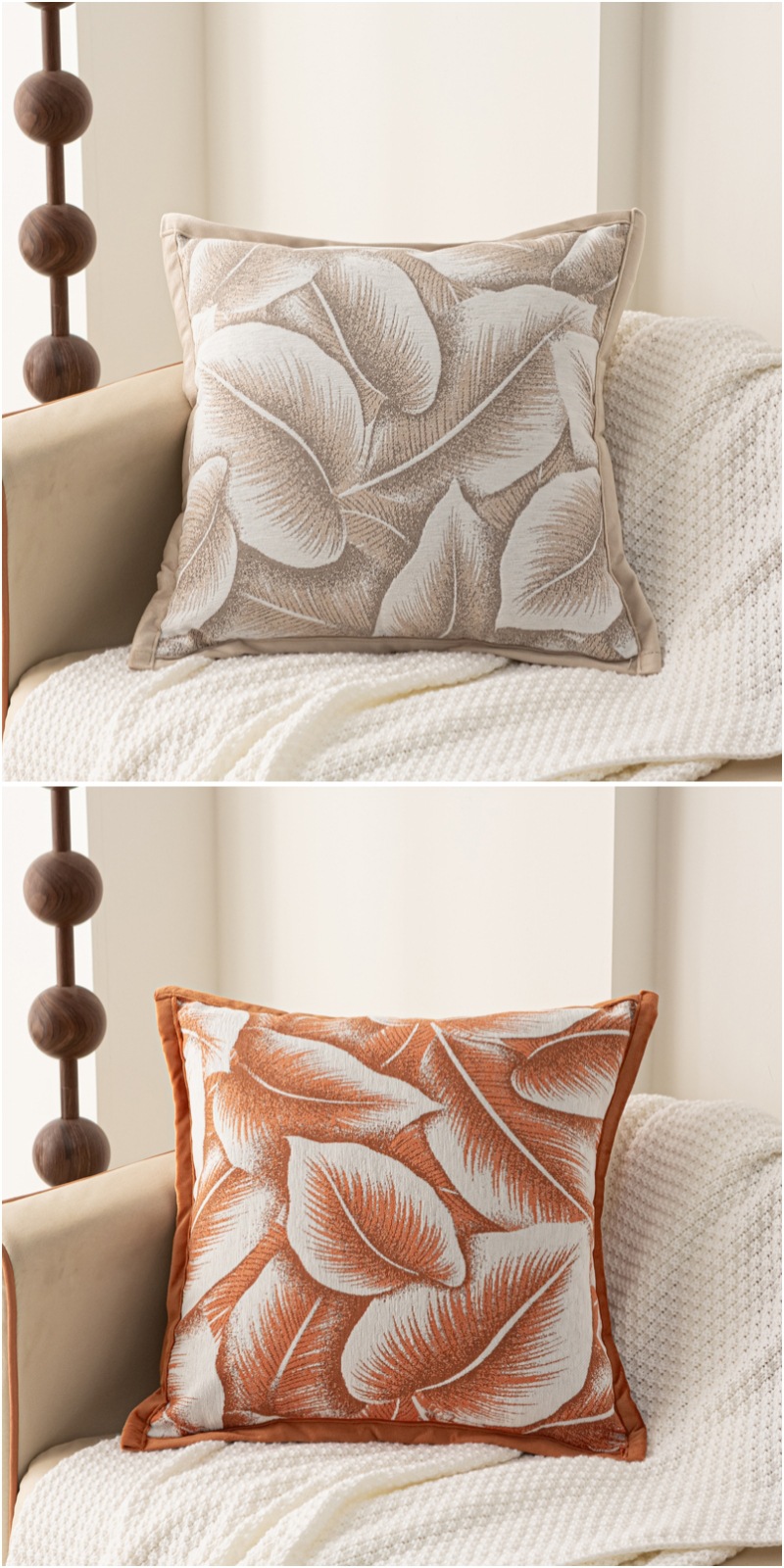 Chenille large leaf pattern pillowcase