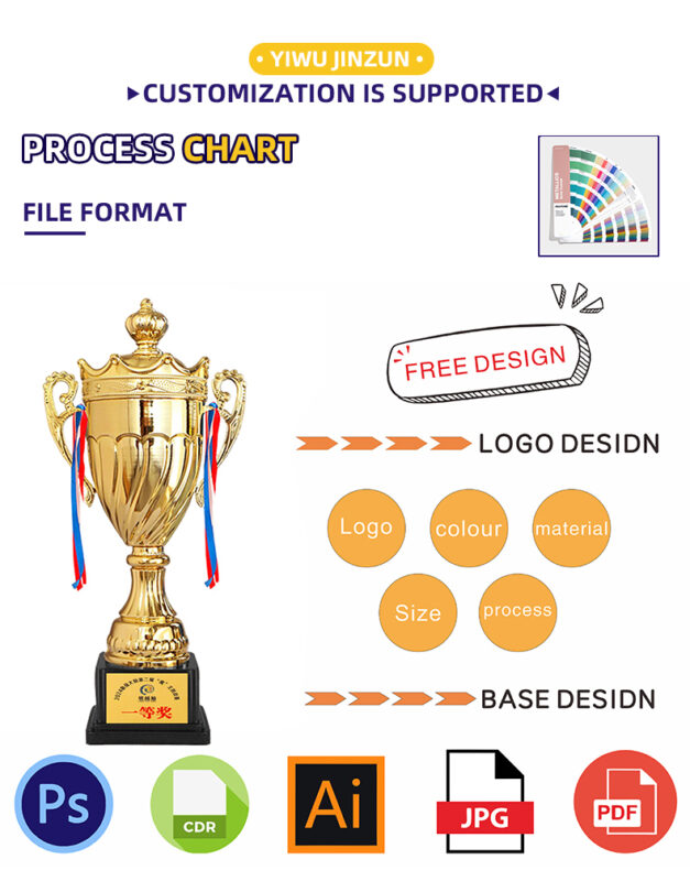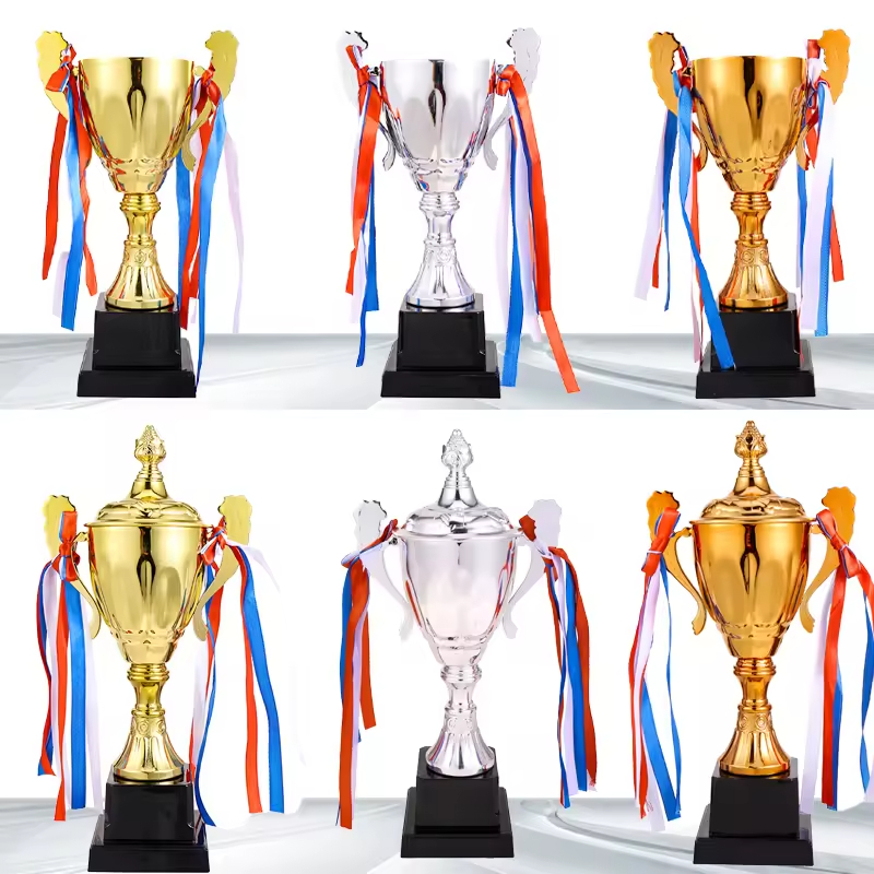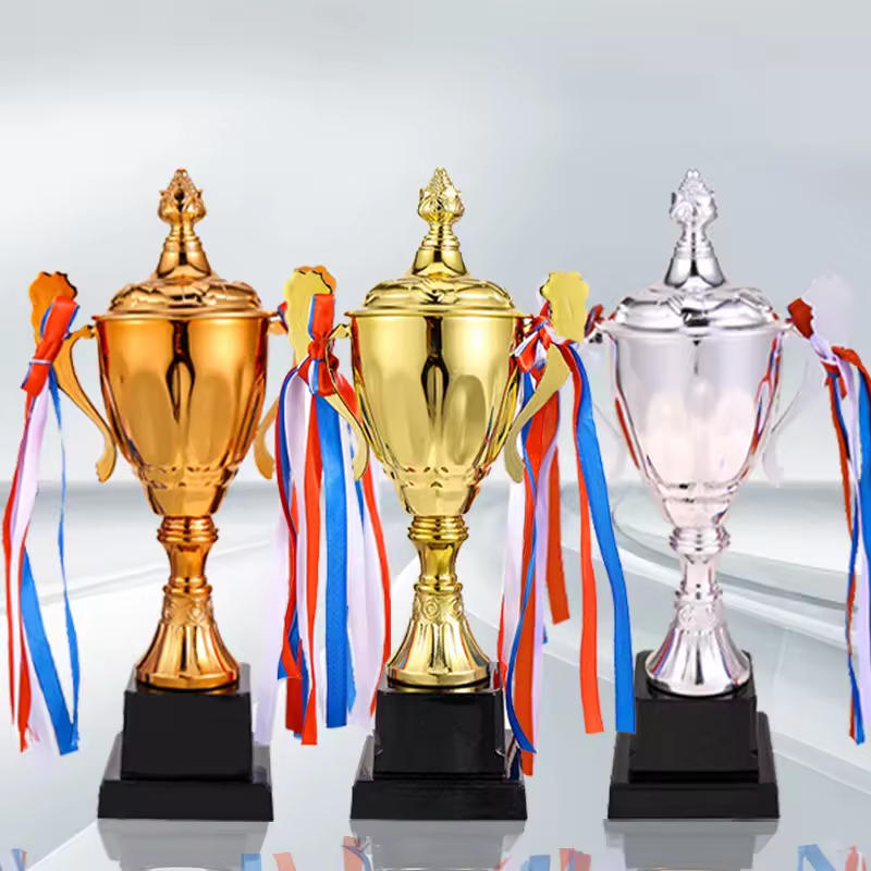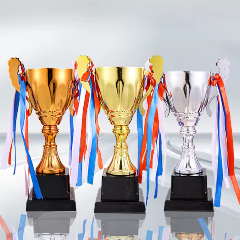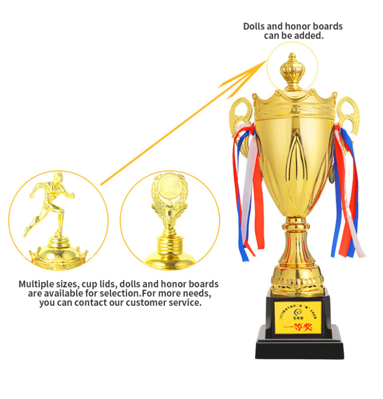 Gold, silver and copper three-color electroplated trophy - customizable color matching and ribbon. Made of high-quality metal material, it is specially designed for awarding football/basketball events