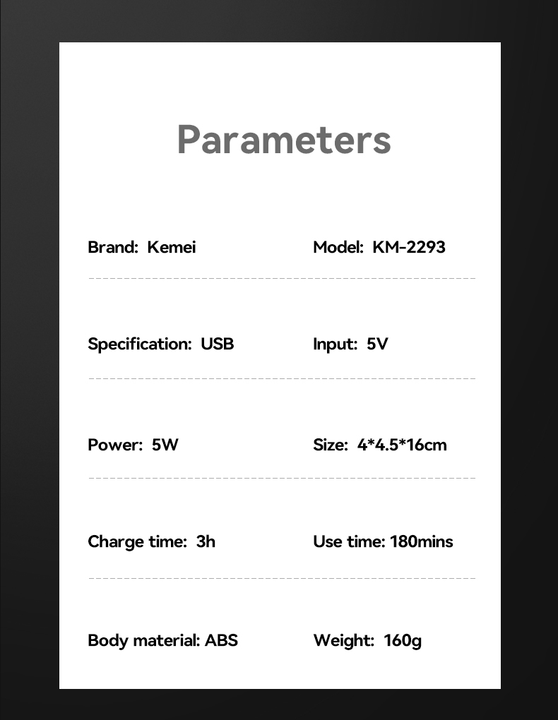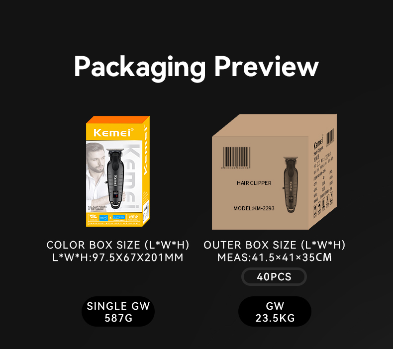 Kemei's new hair clipper, KM-2293 - a fast-charging model available in black, gold and multiple colors, specifically designed for hair salons