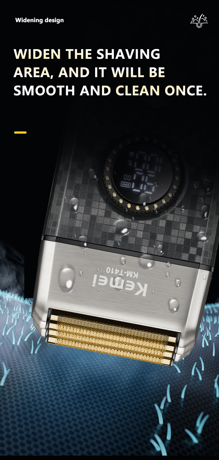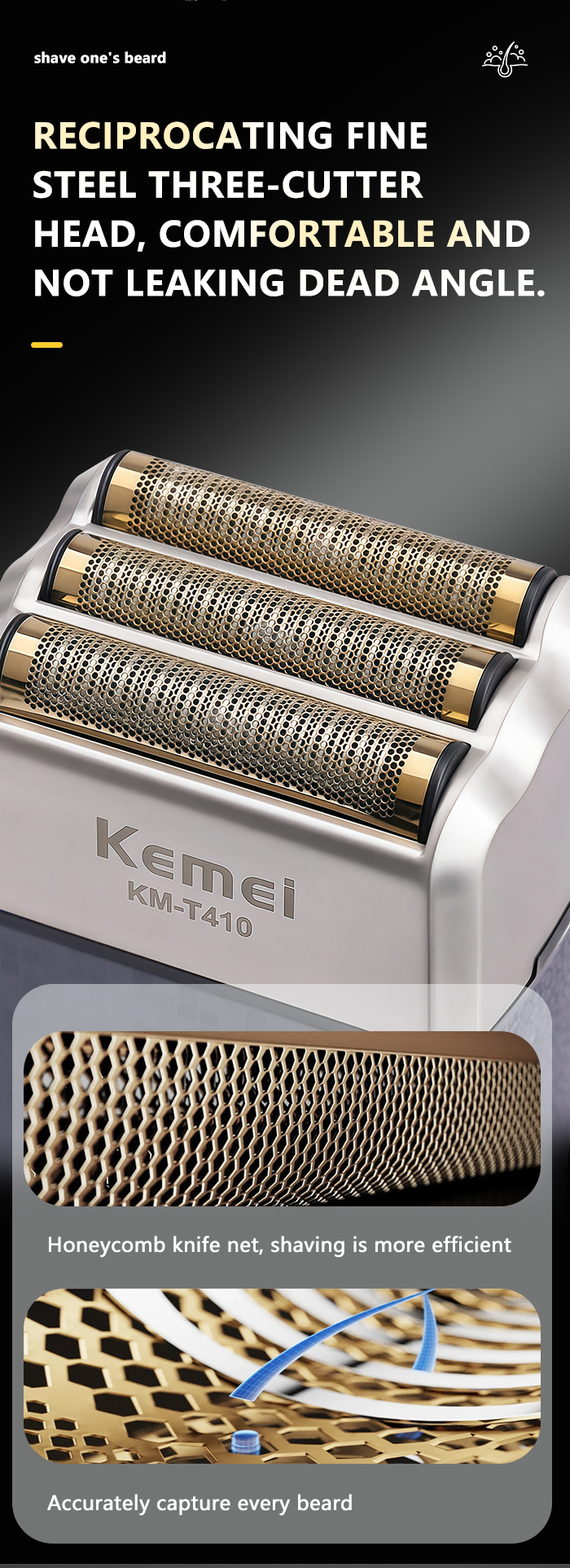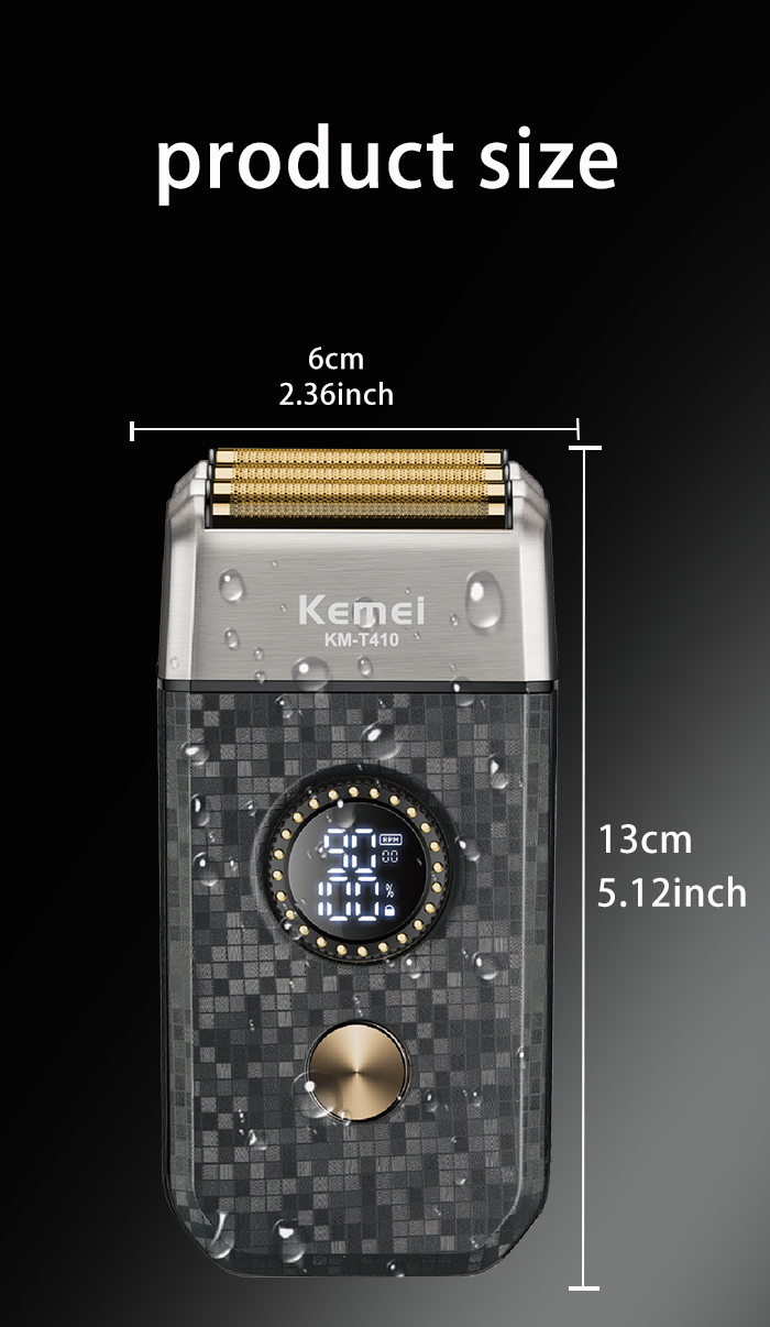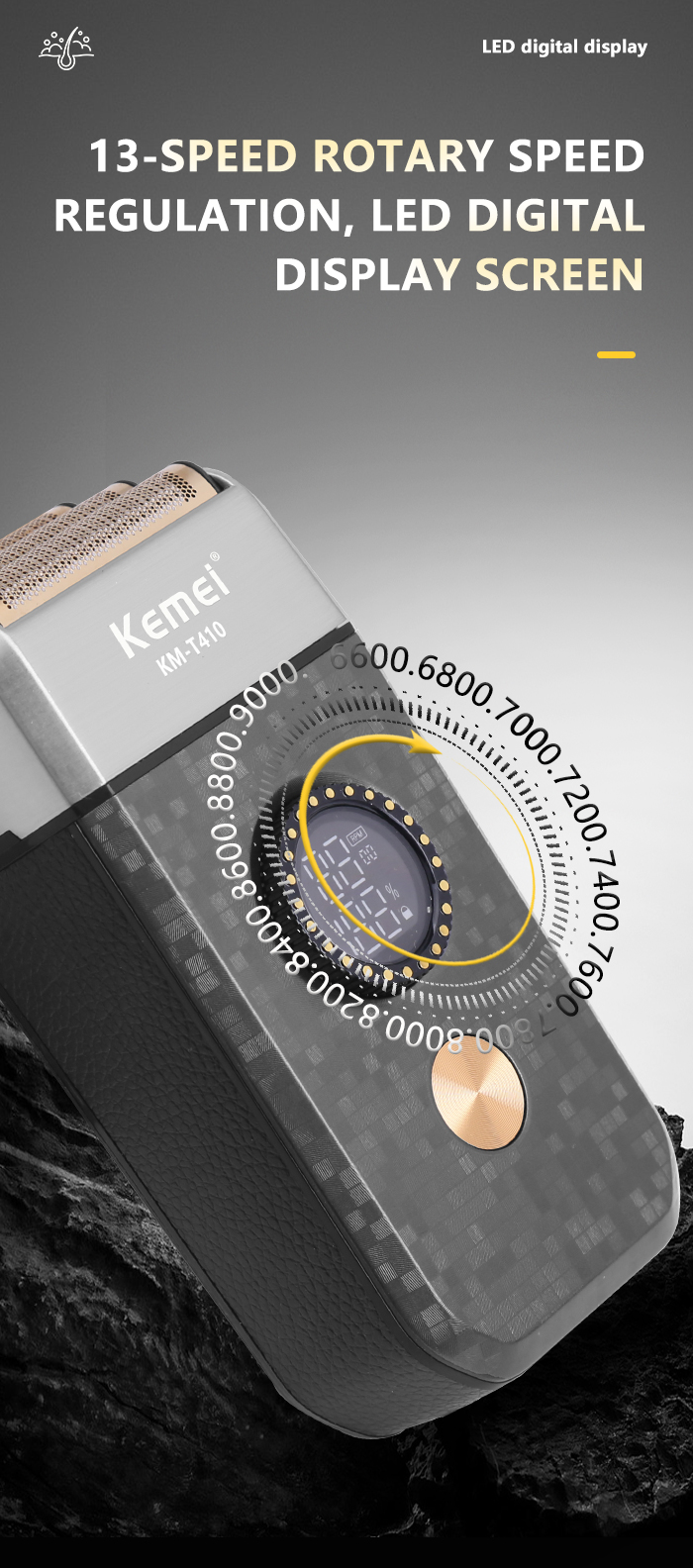 科美电动胡须刀 KM-T410——13 档调速 1200 毫安电池 9000 转 / 分钟 IPX6 防水 光头神器 三刀头搭配迷你剃须刀