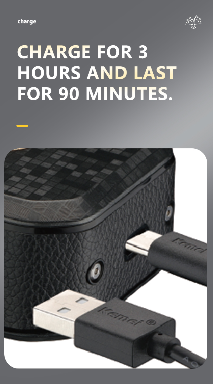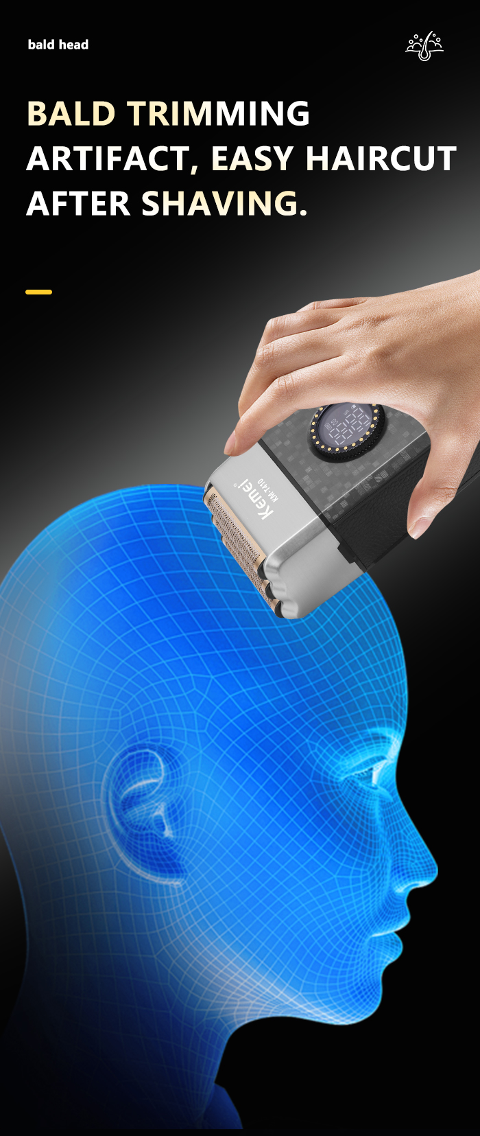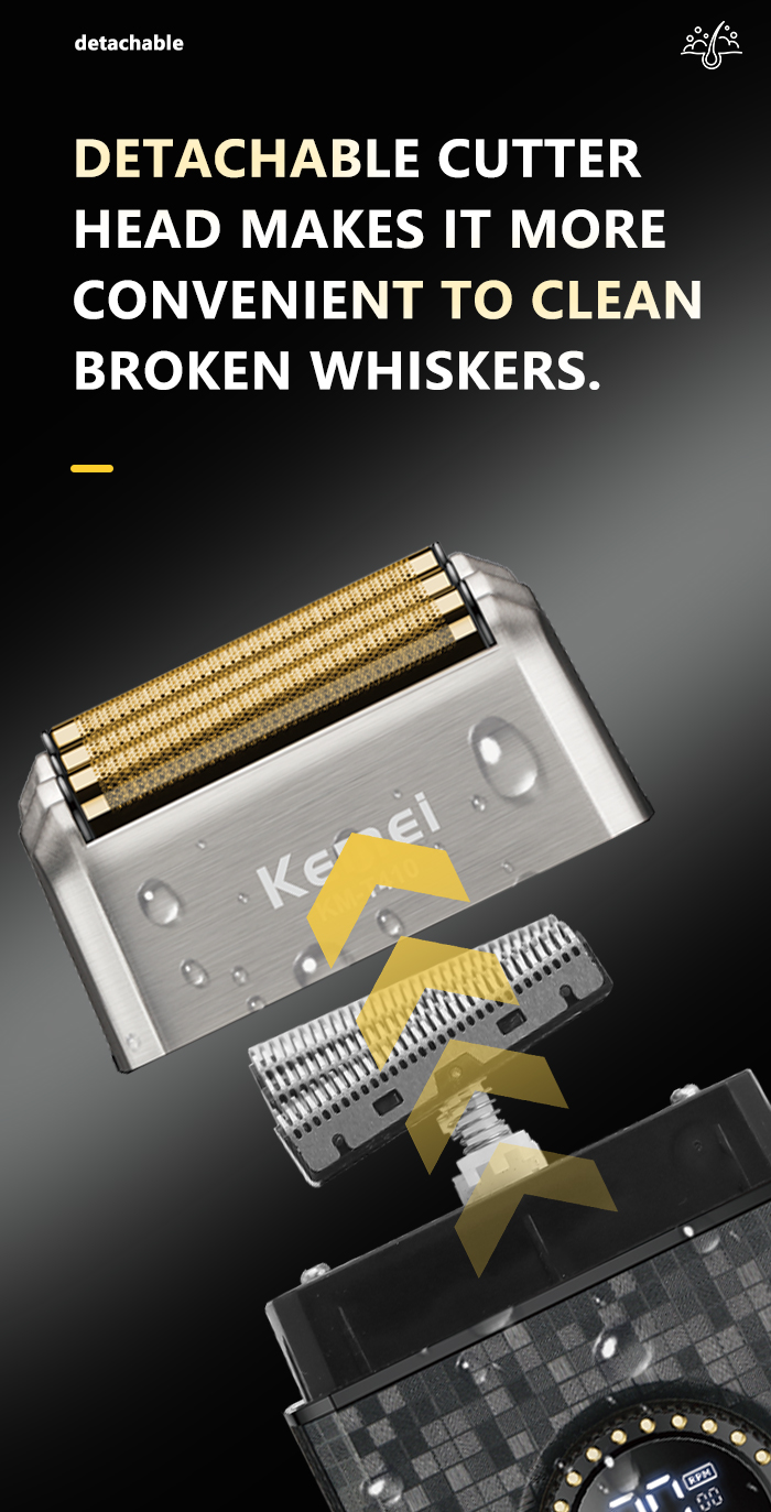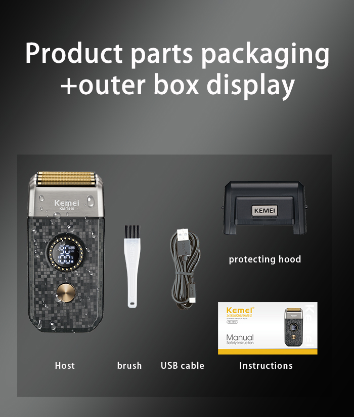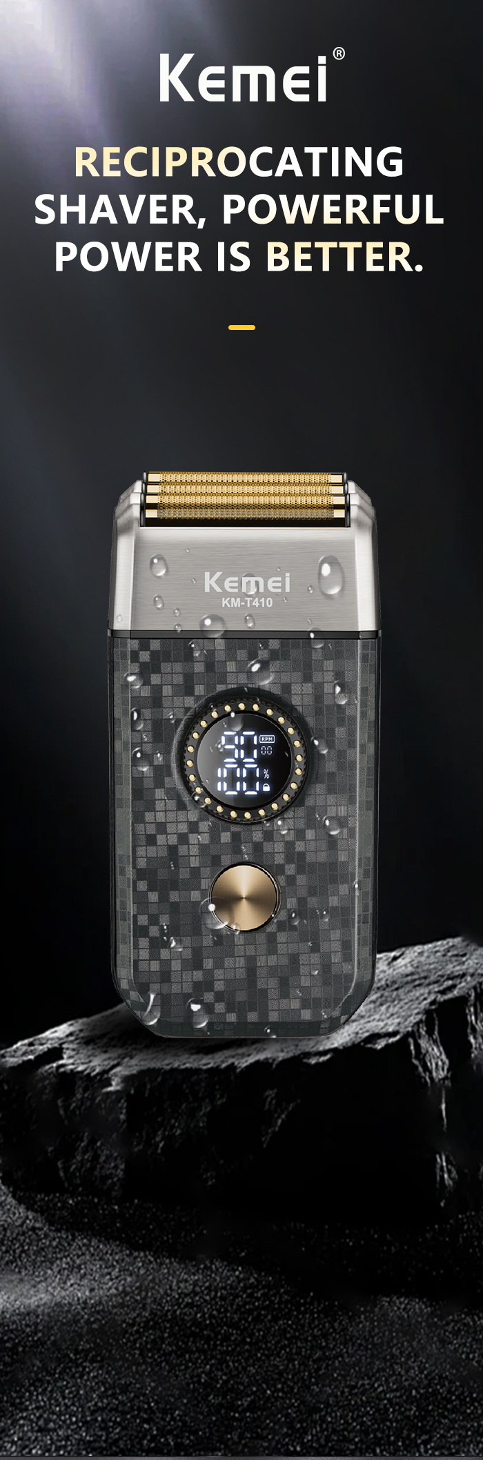 科美电动胡须刀 KM-T410——13 档调速 1200 毫安电池 9000 转 / 分钟 IPX6 防水 光头神器 三刀头搭配迷你剃须刀