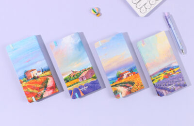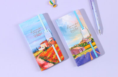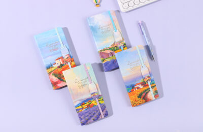 Landscape pattern pocket notebook - A portable and easy-to-carry notebook with a fairy tale town theme