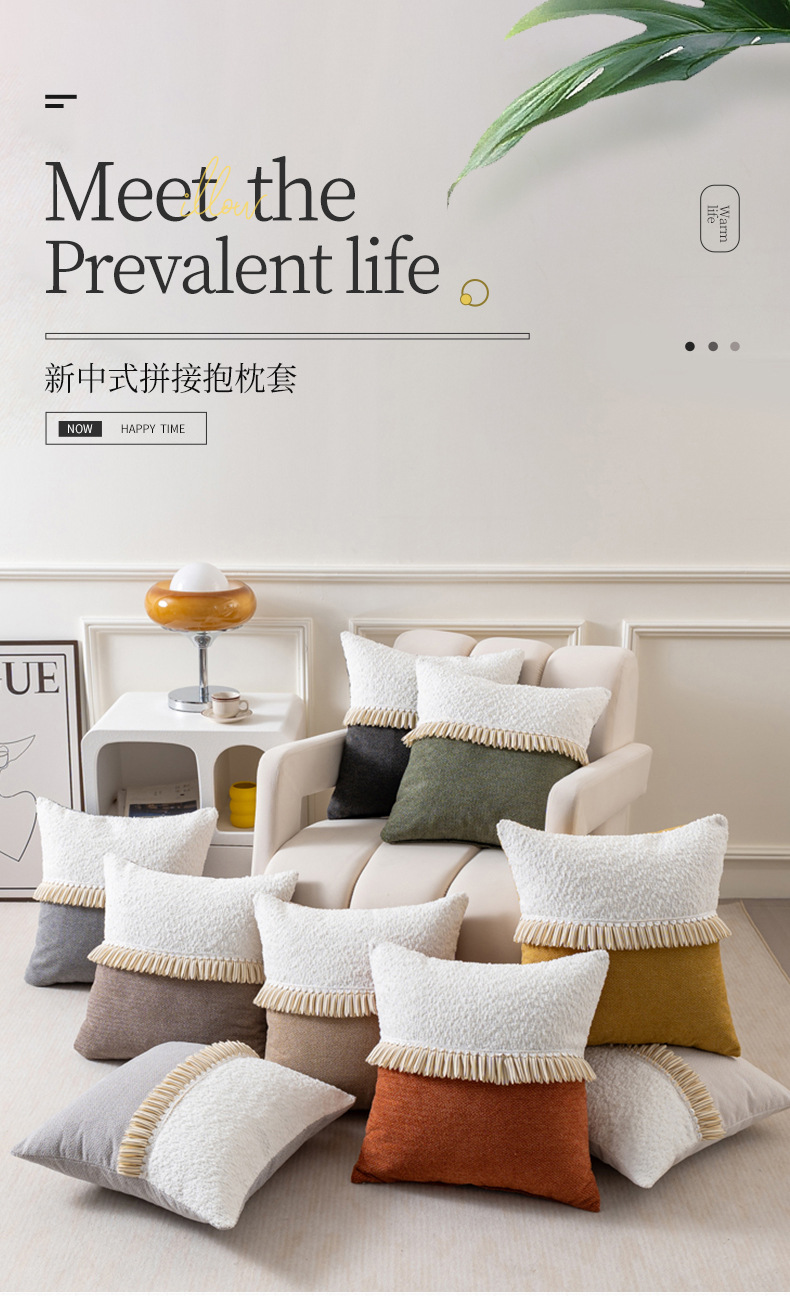 圈绒拼接款抱枕套