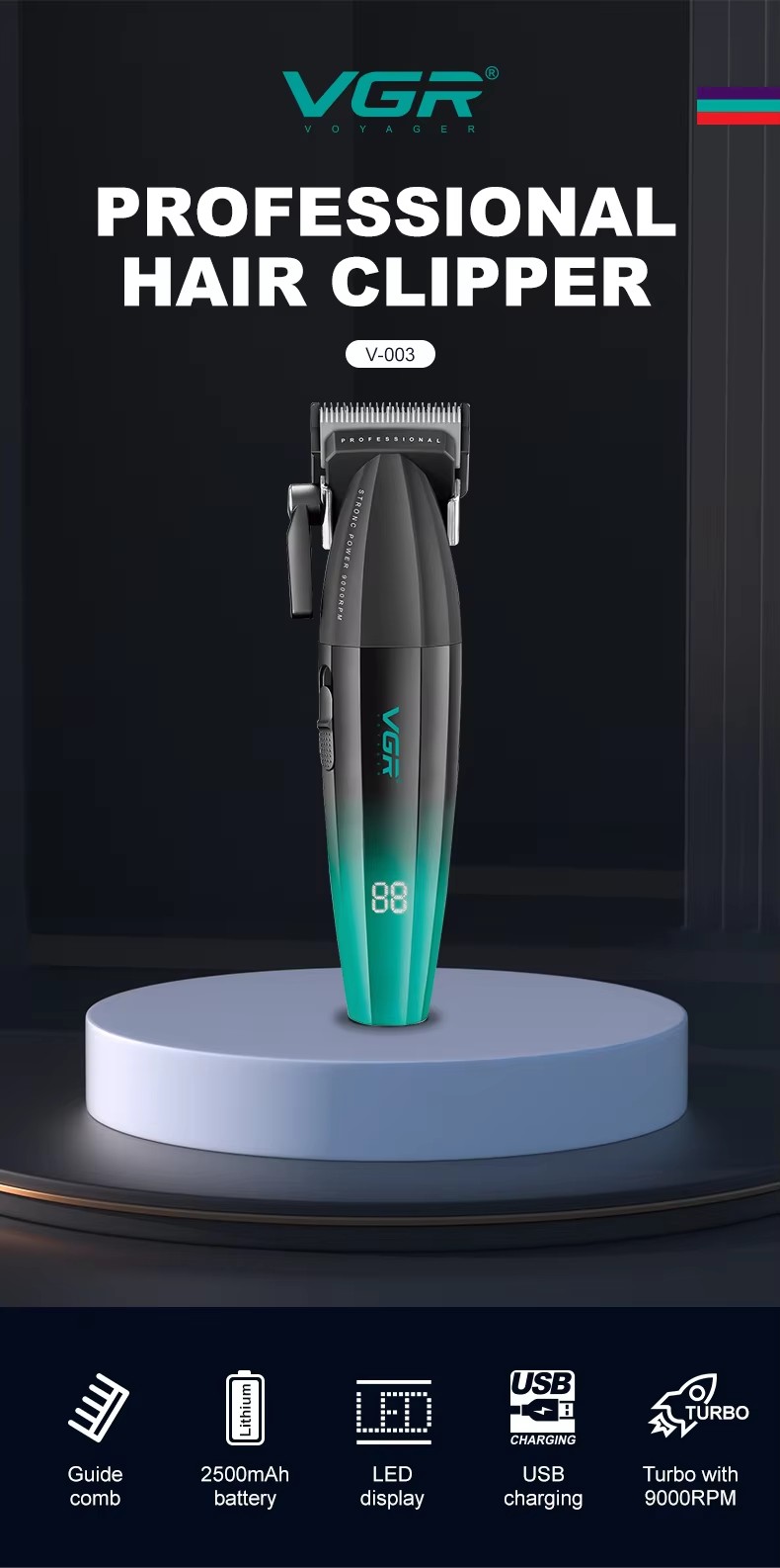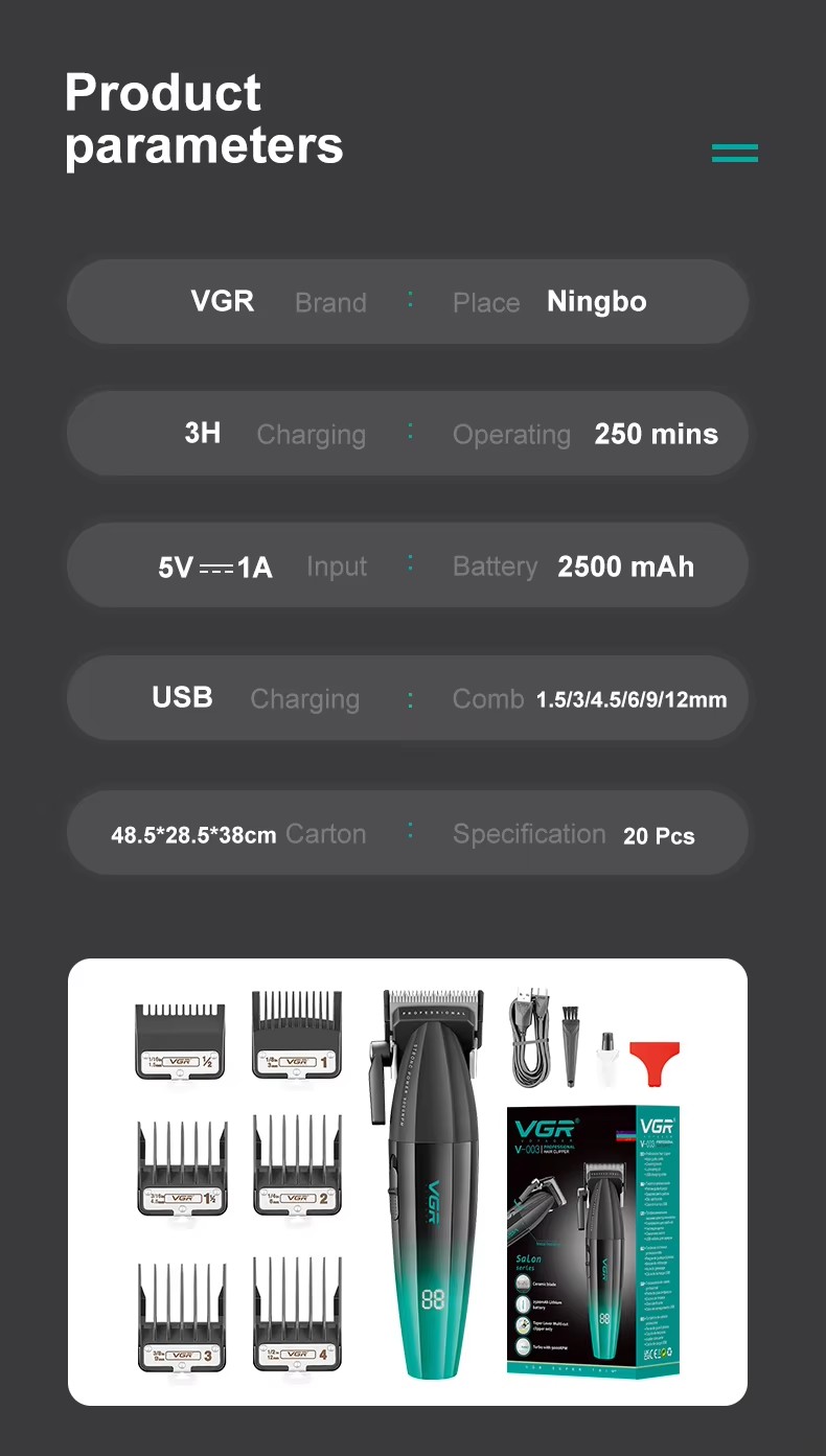 VGR V-003 理发店专用高速充电理发器 男士适用
