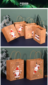 Wholesale custom Christmas-patterned kraft paper tote bags - portable shopping gift packaging bags with laminated material and logo printing