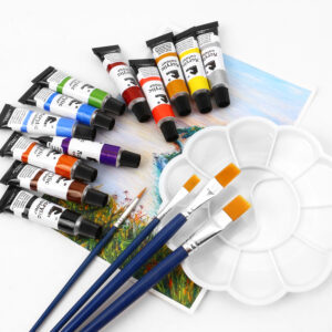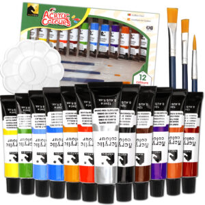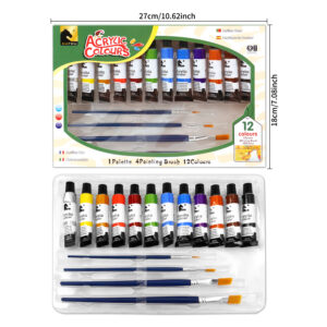 12 色丙烯颜料套装(12 毫升 / 0.4 盎司)— 含 4 支画笔 + 1 个调色盘 新手与专业画师适用 圣诞礼品优选美术套装