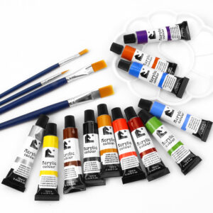 12 色丙烯颜料套装(12 毫升 / 0.4 盎司)— 含 4 支画笔 + 1 个调色盘 新手与专业...