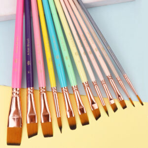12-piece professional art body painting brush set - oil/watercolor dual-purpose, suitable for acrylic, canvas, gouache creation, with fine detail brushes. Dome/petal-shaped brush tips, suitable for stage makeup, embossing, and outlining