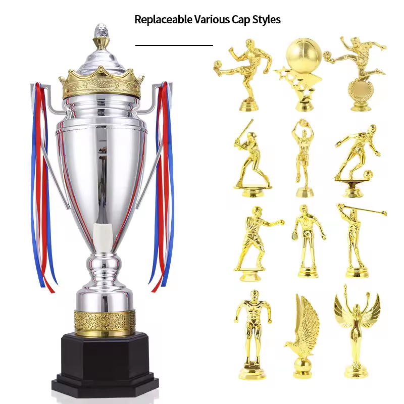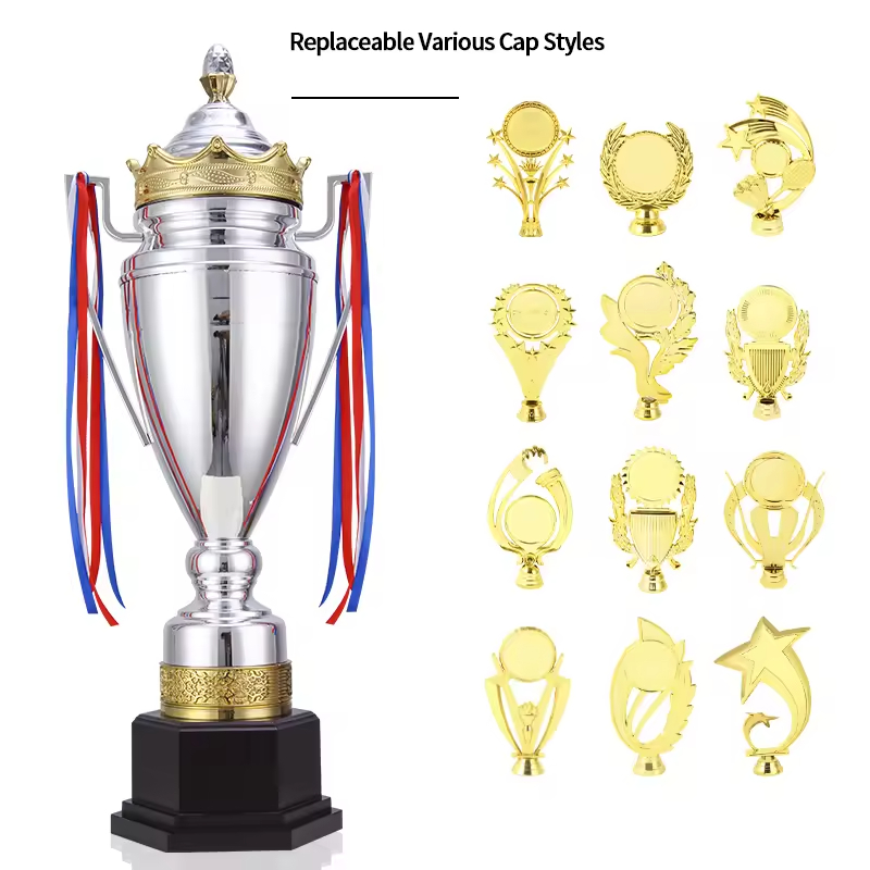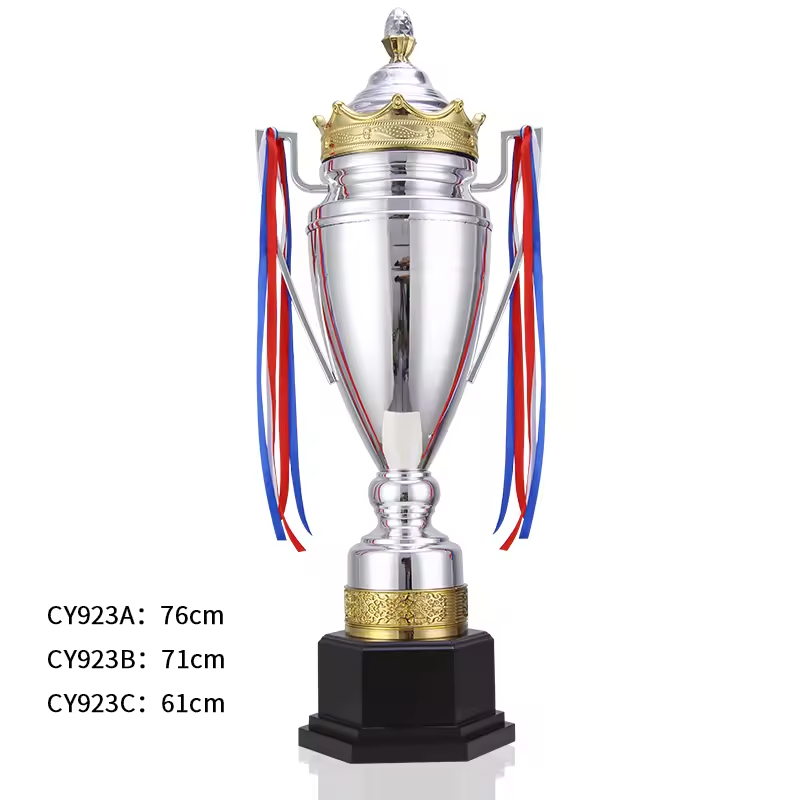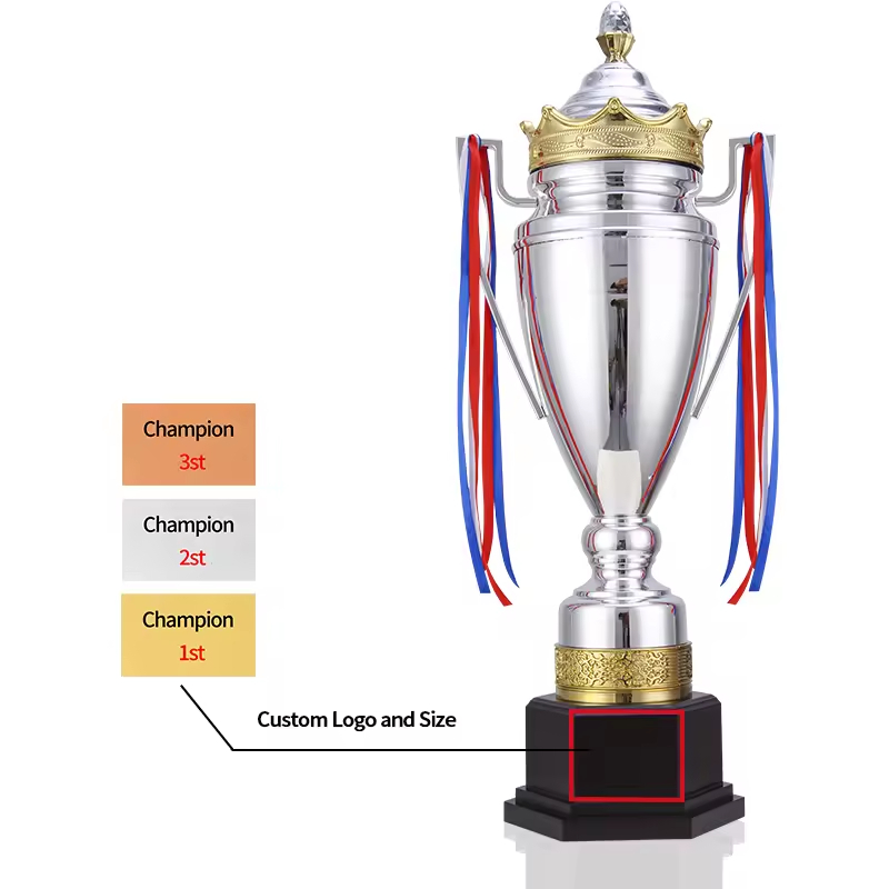 Factory wholesale sports event trophies - gold, silver and copper electroplated large crown cup top honor trophies for football/basketball events
