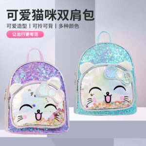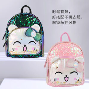 Big tail cat sequined cute cat children's backpack cartoon image Love Princess girls fashionable pu children's backpack