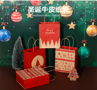 Customized printed degradable kraft paper gift shopping bags - supporting digital logo printing for Christmas gift packaging