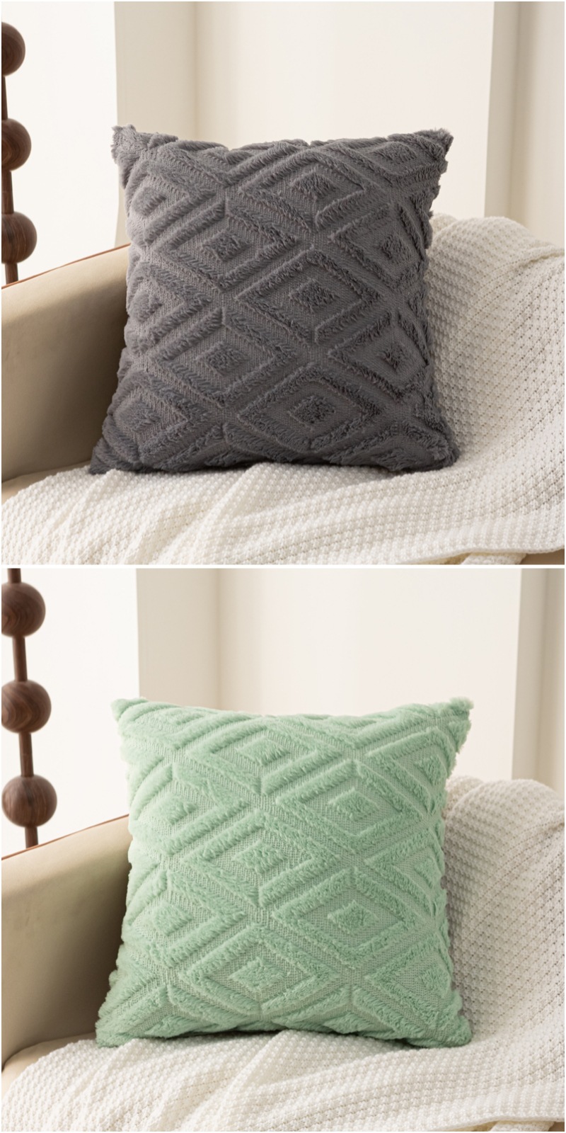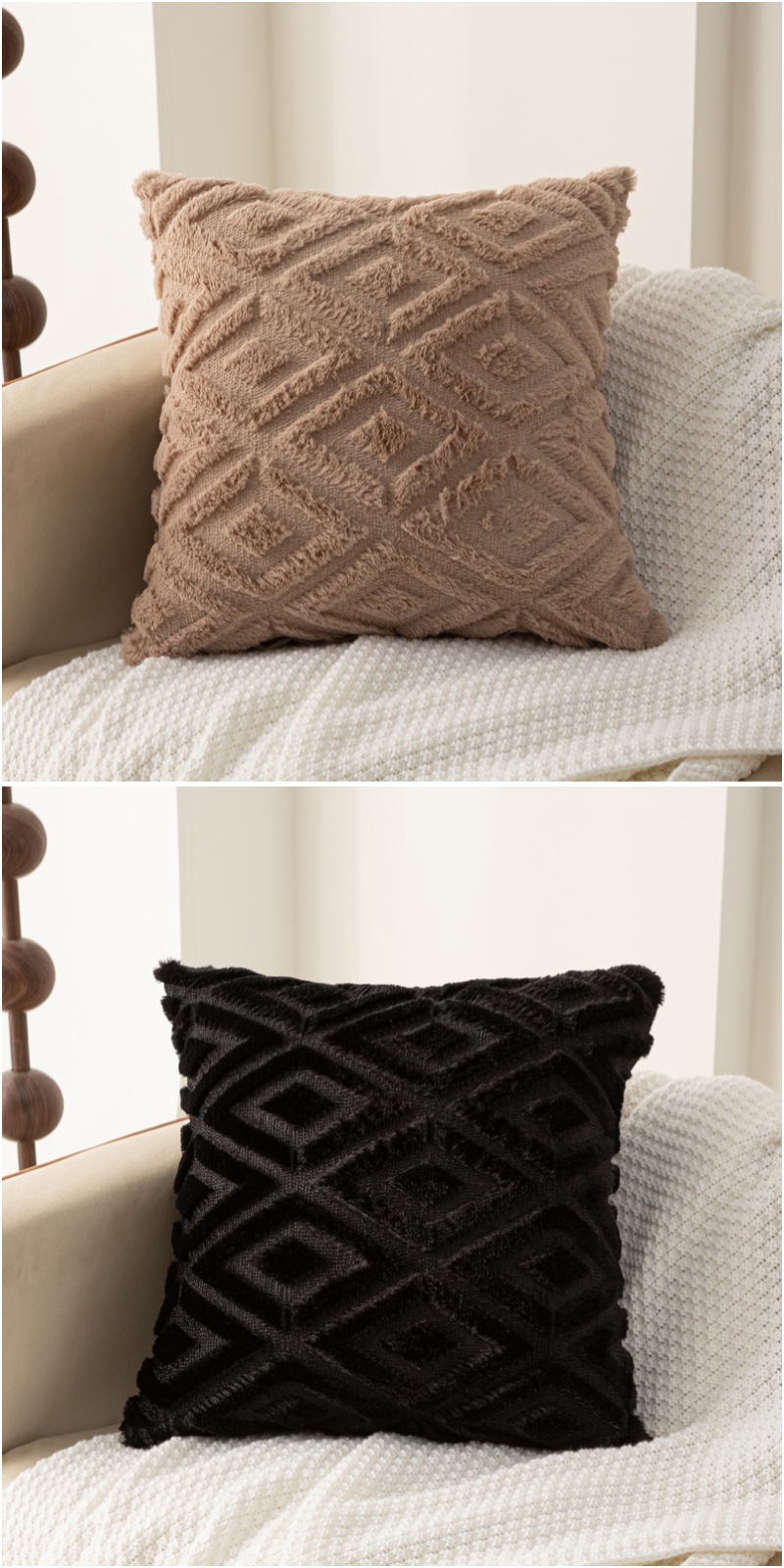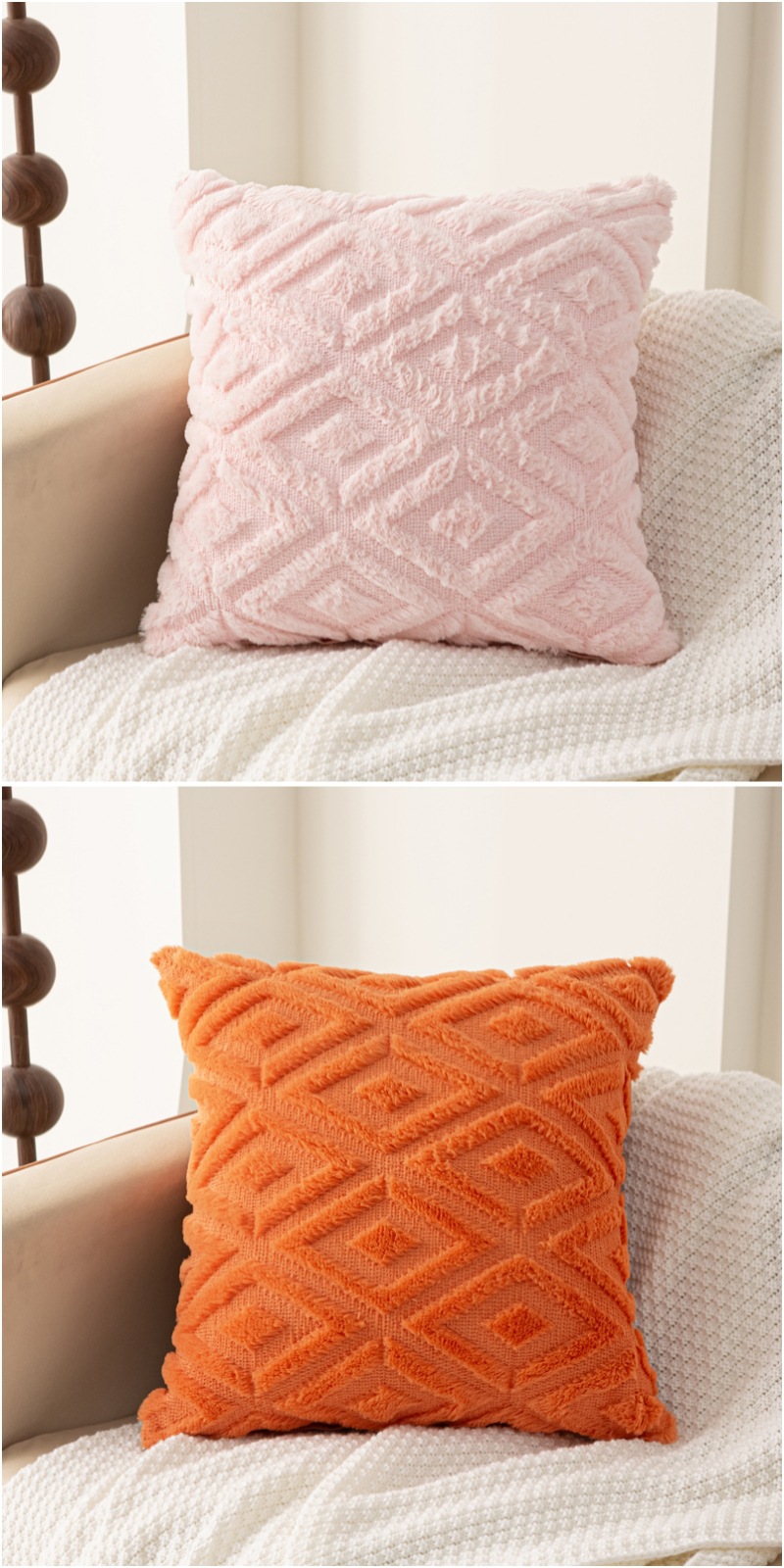 Rabbit hair diamond-patterned pillowcase