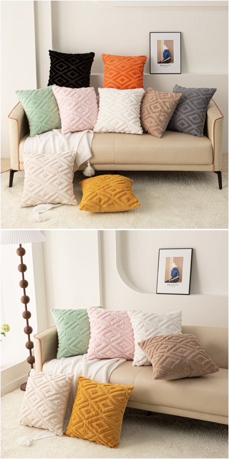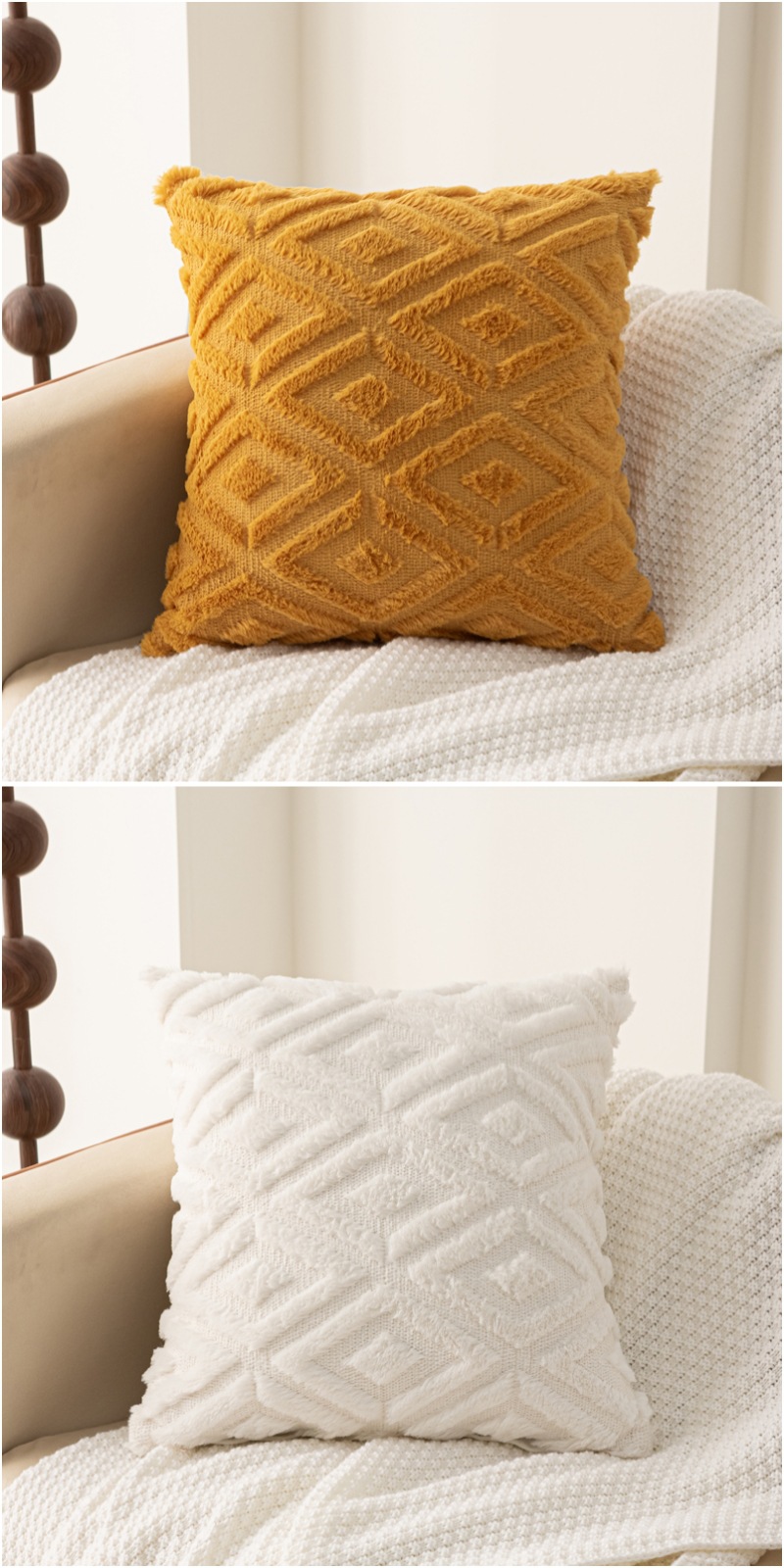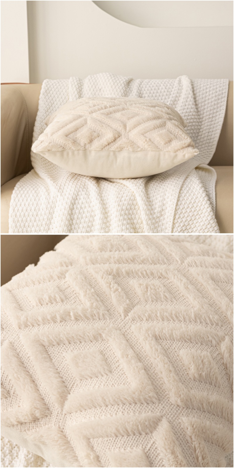 Rabbit hair diamond-patterned pillowcase