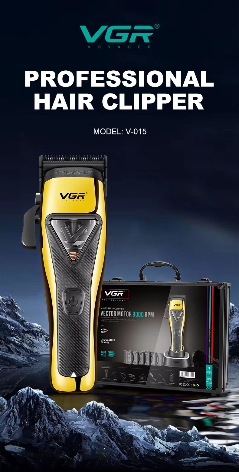 VGR V-015 Barber Shop Special 9000 RPM vector motor Hair clipper DLC Blade suitable for men
